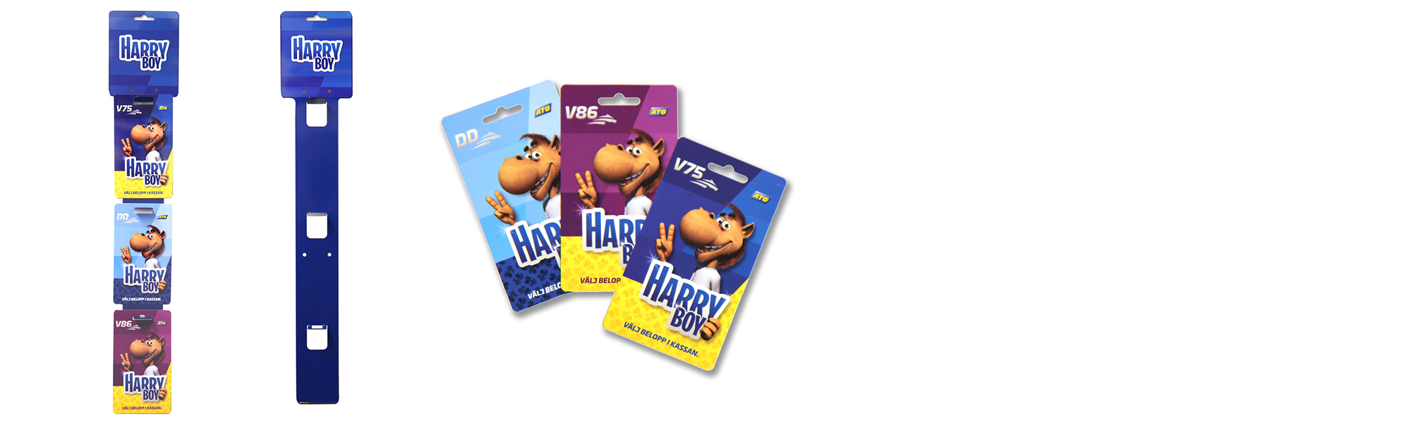 Hos många ICA-butiker kan man genom att lämna ett kort till kassörskan köpa en Harry Boy till önskad spelform. Förutom korten tog vi fram en display som är lätt att distribuera, tar minimalt utrymme i anspråk och har rätt prislapp.